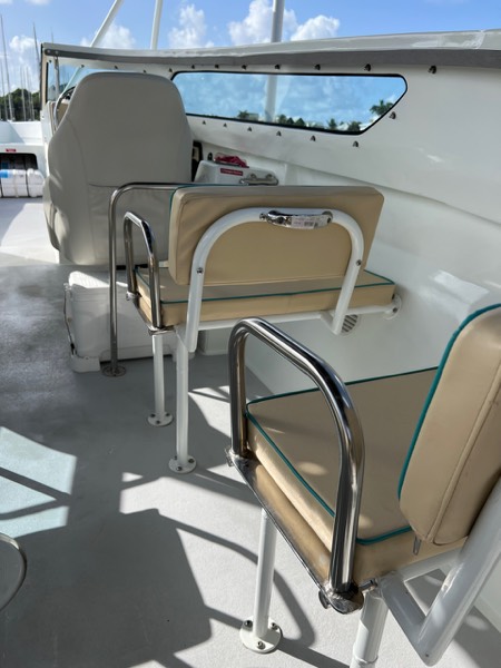 Avec ses 12,67 mètres de long et sa carène en V profond issue de la compétition, le 42 Poker Run offre une navigation rapide, stable et sécurisante, même dans des conditions engagées. Véritable référence des événements offshore, ce bateau a été conçu pour la vitesse et le passage en mer formée.