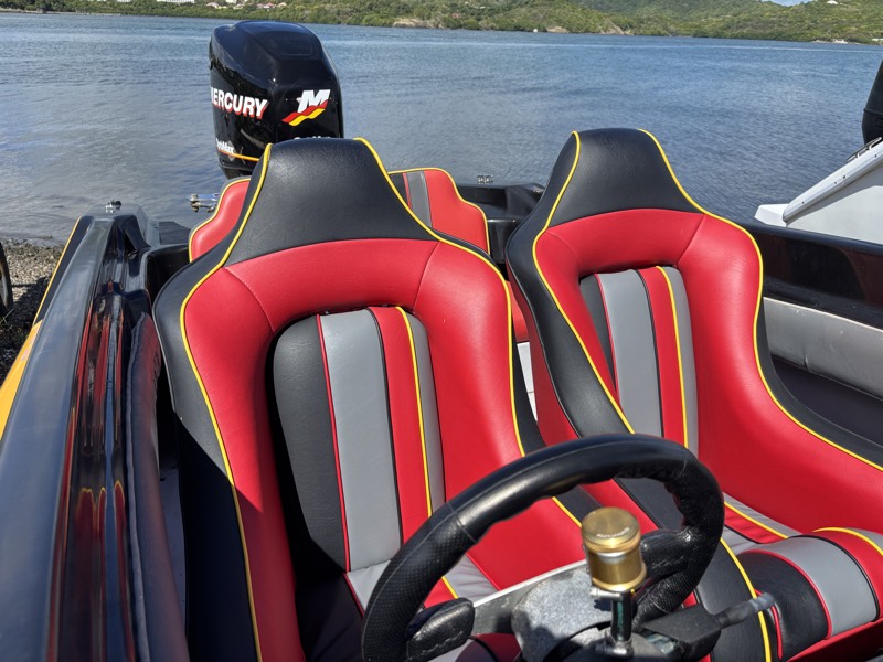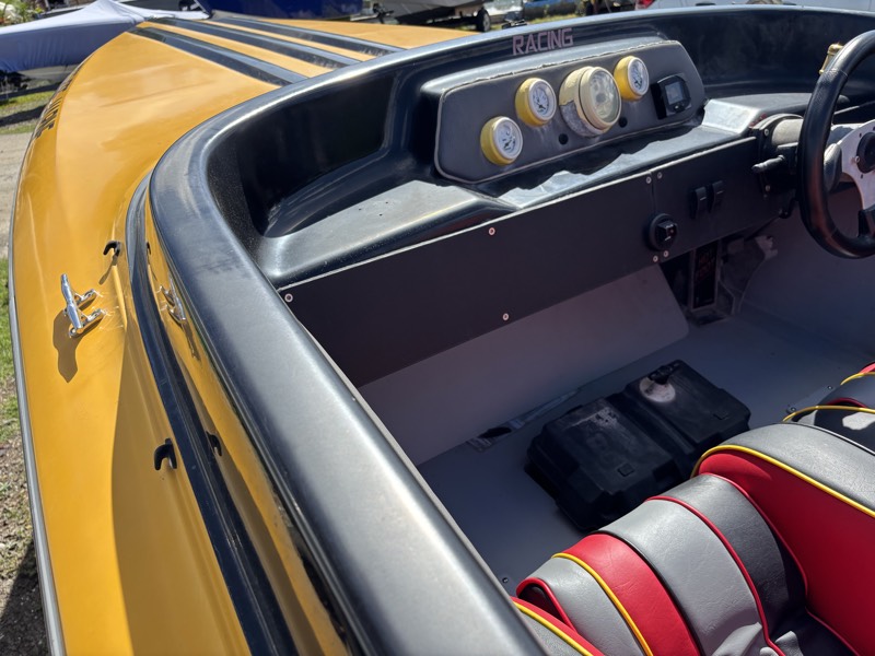 Son cockpit est volontairement épuré et orienté performance : position de pilotage basse, excellente visibilité, répartition des masses optimisée et accès facile aux commandes. Une configuration idéale pour les amateurs de navigation sportive et de coques typées racing.